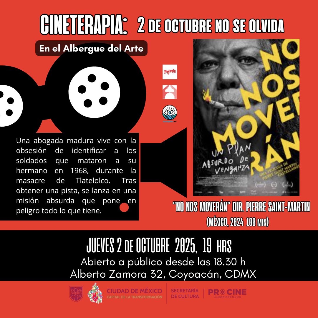 Cineterapia especial “No nos moverán” Con motivo de un año más de la matanza de Tlatelolco y al lema de que el “2 de octubre