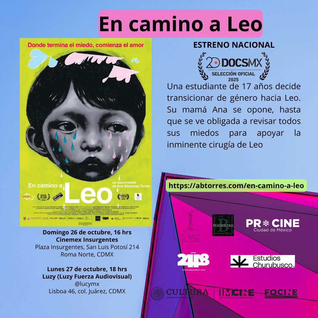 Muy felices de ser parte de la Selección Oficial en la sección competitiva “Hecho en México” dentro de la 20º edición del Festival Internacional de la Ciudad de México DocsMx. “En camino a Leo” se presentará los días: