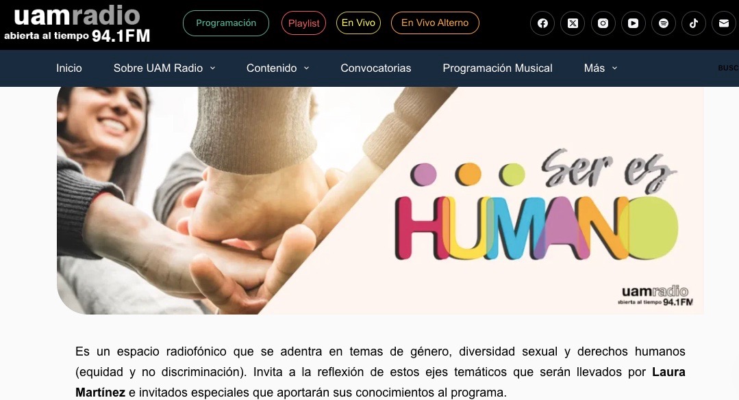 El jueves 26 de febrero del 2026 tuvimos el gusto platicar con Laura Martínez en el programa “Ser es Humano” de Radio UAM 94.1 FM,  dedicado a exponer temas de diversidad de género e igualdad, donde estuvimos hablando acerca del documental “En camino a Leo” su proceso de filmación, así como la emotiva respuesta de las audiencias con cada función que hemos dado y su paso por festivales nacionales e internacionales.