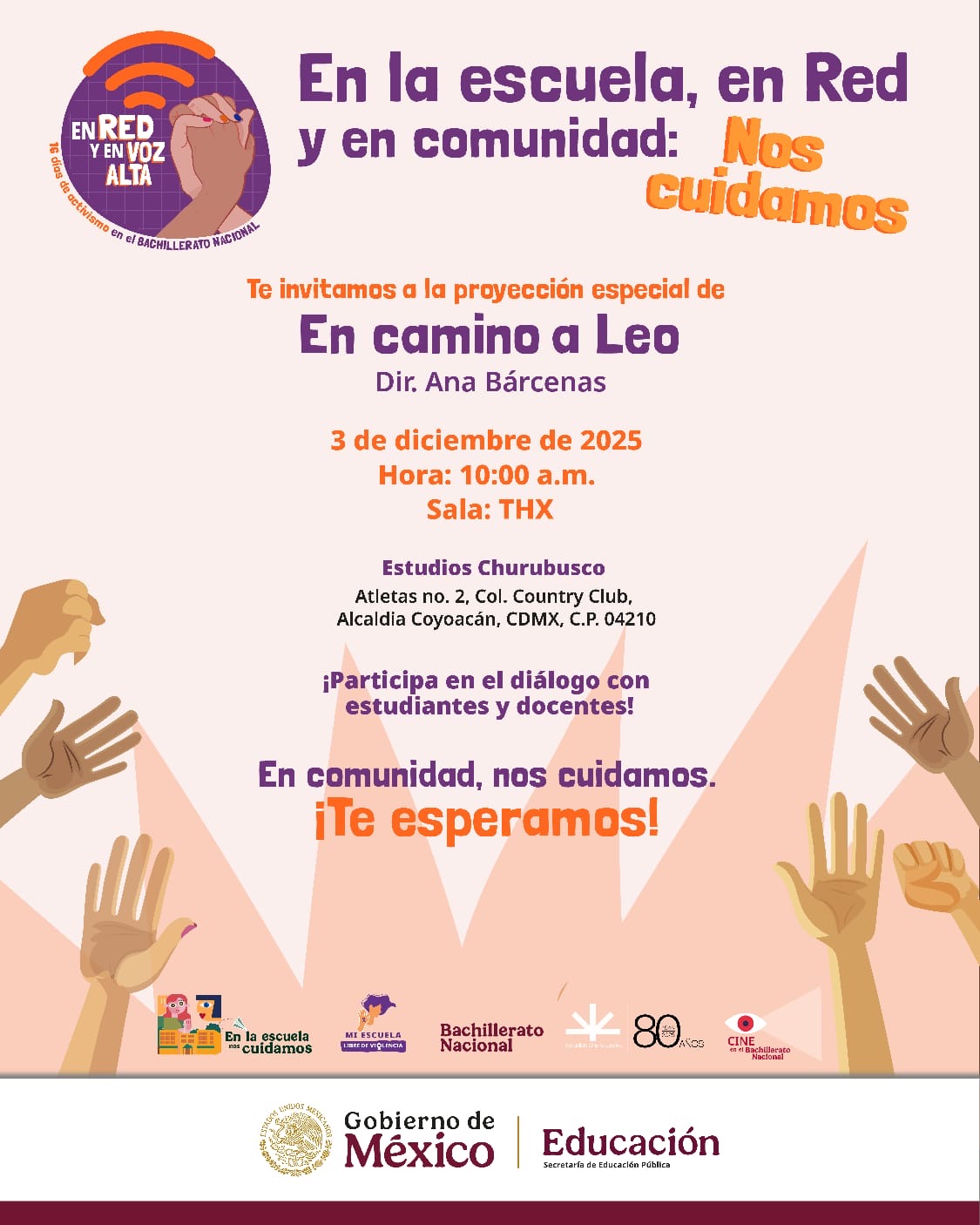 En el marco de la iniciativa “16 de activismo en el Bachillerato Nacional” impulsada por la Subsecretaría de Educación Media Superior de la Secretaría de Educación Pública, se llevó a cabo el día 3 de diciembre dentro de la sala THX de los Estudios Churubusco Azteca, una proyección muy especial de “En camino a Leo” (Mex, 2025) para docentes y especialistas en temáticas de género y educación pública, con la presencia de la directora Ana Bárcenas Torres en un panel que se dispuso para una charla sobre los tópicos principales de esta película documental, que aborda la identidad de género y la transición no sólo del niñx o joven que decide hacerlo, sino de la propia familia que en la mayoría de los casos no cuenta con los recursos ni el sostén emocional adecuado para escuchar y acompañar dicho proceso.